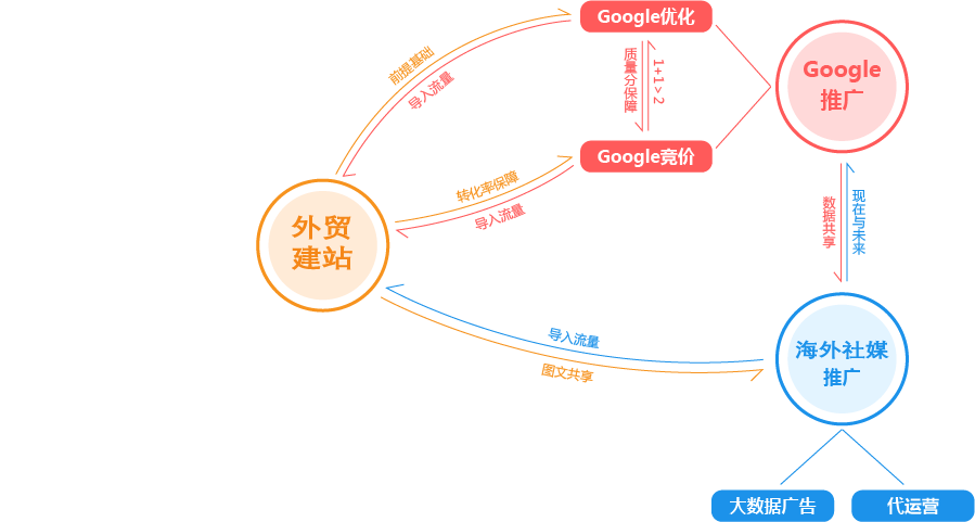 嘉兴外贸推广公司为您提供全面的“整合”方案,为您的企业提供全生命周期的精细化服务和咨询。为此,我们搭建了从广告投放到SEO优化,从内容运营到网站开发,从品牌策划到电商运营的近100人的团队,组成了一家集全球渠道资源、人才资源、技术资源为一体的数字营销机构,为您一站式解决出海难题,实现品牌全球推广!